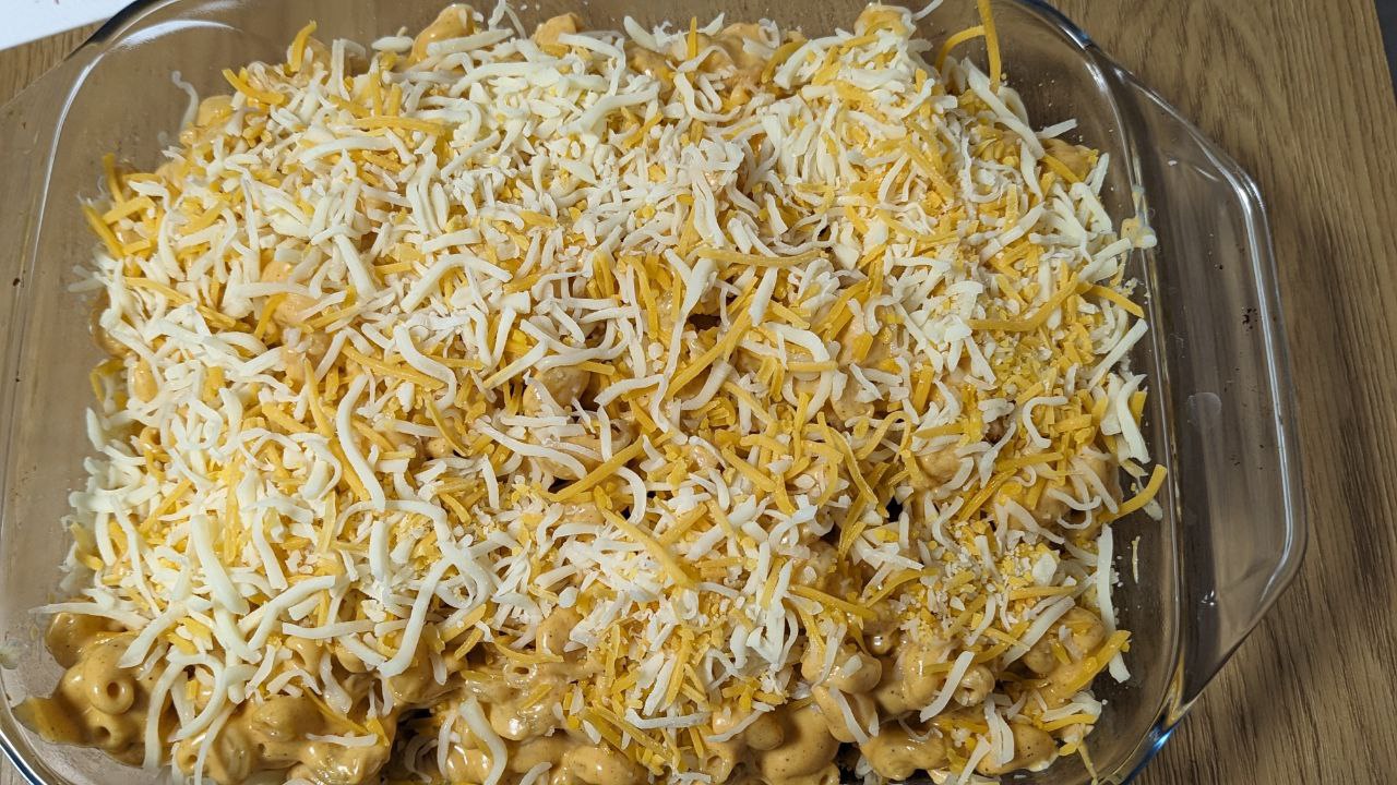 - Bereite eine Auflaufform vor und lege die erste Schicht mit der Käsenudelsoße auf, dann eine Schicht des restlichen Käses darauf und dann wieder Nudeln und wieder Käse, bis nichts mehr übrig ist.